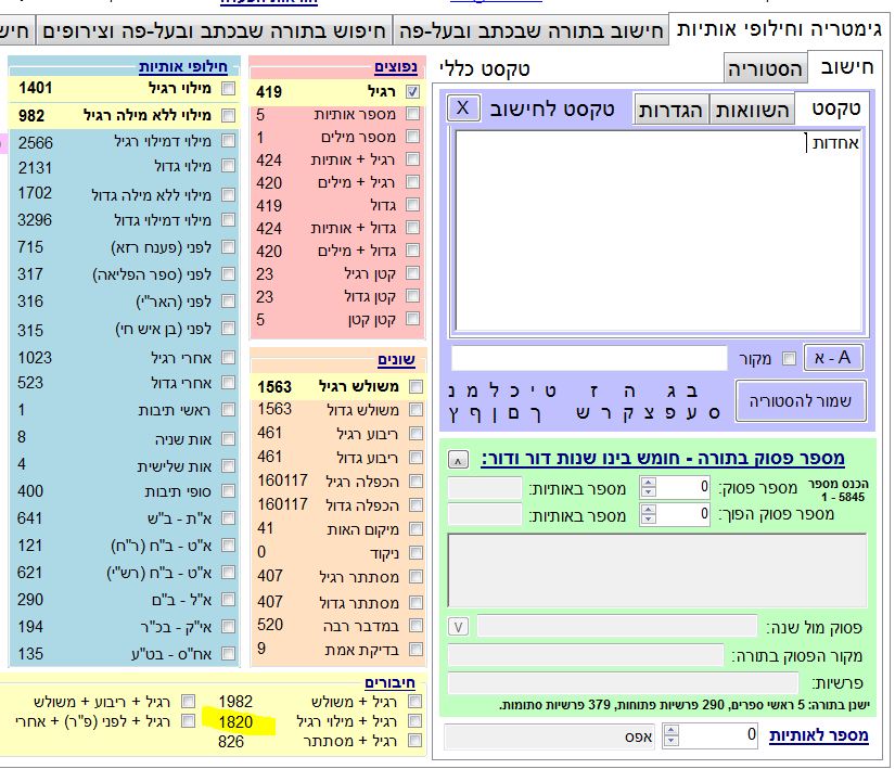 אחדות = 1820 (רגיל ומילוי)