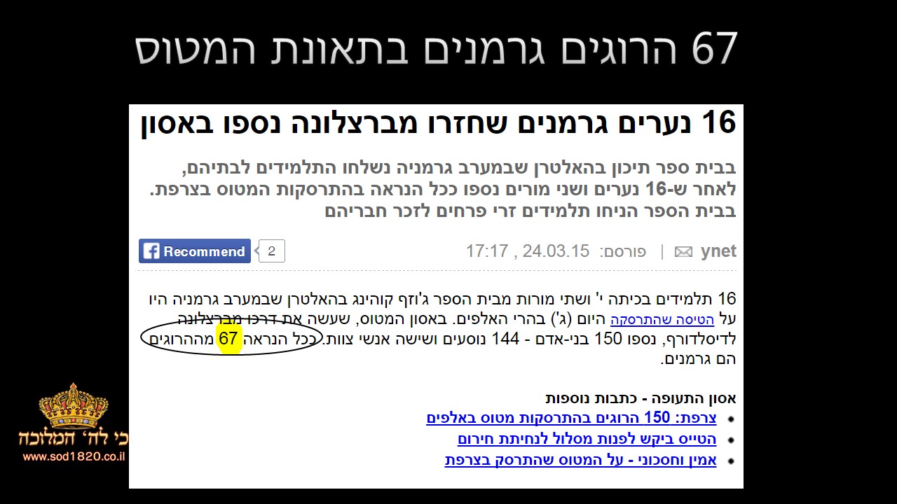 (הערה לפעמים אנו רואים מציאות של מספר 67 ולאחר כמה ימים המספר מתעדכן – צריך לזכור שזה גם מאלוקים הוא תכנן שבהתחלה יראו בחדשות 67 ולאחר מכן זה ישתנה לתשומת לב)