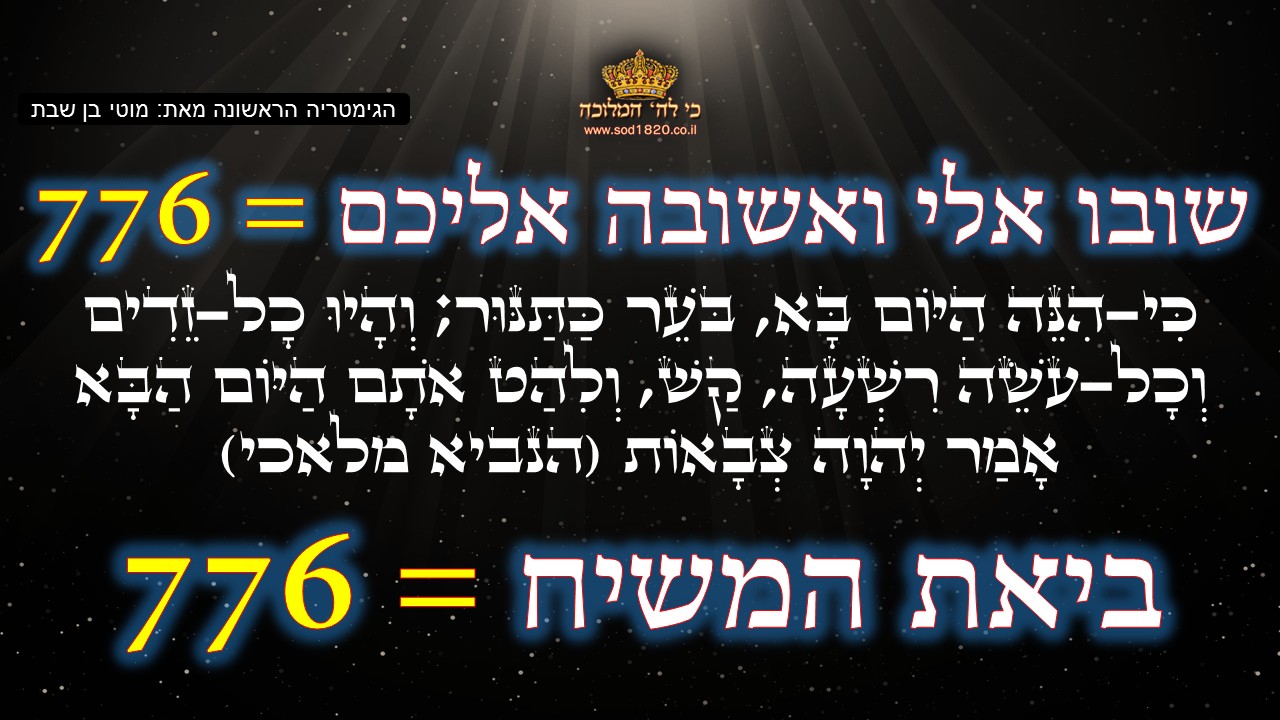 "וּפִתְאֹם יָבוֹא אֶל הֵיכָלוֹ הָאָדוֹן אֲשֶׁר אַתֶּם מְבַקְשִׁים וּמַלְאַךְ הַבְּרִית אֲשֶׁר אַתֶּם חֲפֵצִים הִנֵּה בָא אָמַר יְהוָה צְבָאוֹת" = מיקום האות 781! וגם עצם העניין לומר "מיקום האות" יש בו רמז עצום! (כזכור, 781=התשעו)