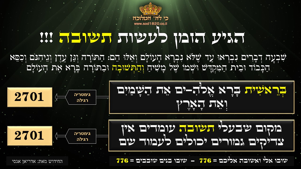 מעניין שכינה = 1820 רגיל + משולש – לדף הגימטריות המלא לחץ