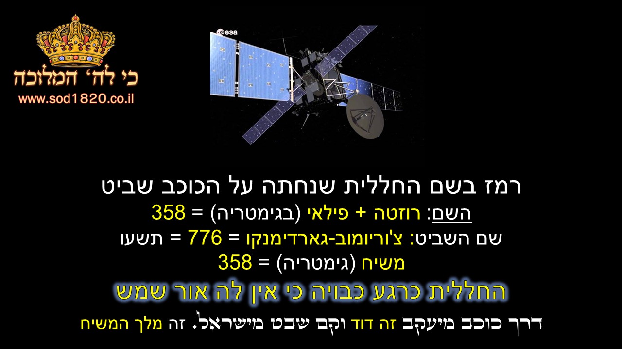 - יש לנו כאן רמז בשם החללית רוזטה 227 = "ברכה" פילאי – אותיות "פלא" = 358 משיח שהוא פלאי –