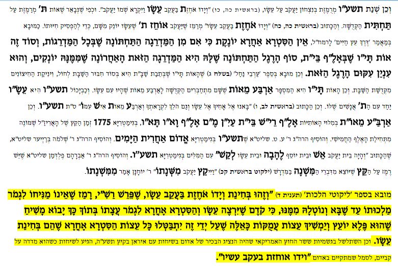 מידע מרוכז מאת: סוד החשמל מָצִינוּ בַּמִּדְרָשׁ (ילקוט דברים תתעג) כָּתוּב בִּמְגִלַּת סְתָרִים 'אִם יוֹם תַּעַזְבֵנִי יוֹמַיִם אֶעֶזְבֶךָּ'. הַפִּתְגָּם הַזֶּה עוֹלֶה בְּגִימַטְרִיָּא כְּמוֹ הַתַּאֲרִיךְ שֶׁל חֻרְבַּן בֵּית הַמִּקְדָּשׁ, ט' בְּאָב תתכ"ח. נִרְאֶה דִּכְשֵׁם שֶׁחֵטְא אָדָם הָרִאשׁוֹן גָּרַם הֶסְתֵּר פָּנִים ל1948 שָׁנִים עַד שֶׁנּוֹלַד אַבְרָהָם, כָּךְ חֻרְבַּן בֵּית הַמִּקְדָּשׁ הַשֵׁנִי יִגְרֹם הֶסְתֵּר פָּנִים לְ1948 שָׁנִים, שֶׁיִּסְתַּיְּמוּ בְּסוֹף שְׁנַתתשע"ה, שֶׁאָז תִּהְיֶה הַשְׁלָמַת הַגְּאֻלָּה כְּדִלְקַמָּן. וְהַטַּעַם שֶׁ1948 נֶחְשָׁבִים לְיוֹמַיִם שֶׁל הקב"ה, כִּי כָל אֶלֶף שָׁנִים נֶחְשָׁבִים לְיוֹם אֶחָד. וּמוֹרִידִים 26 מִכָּל אֶלֶף כְּנֶגֶד שֵׁם הוי"ה שֶׁמַּמְתִּיק אוֹתוֹ. וְזֶה יוֹצֵא 1948. וְכֵן מוּבָא בַּגְּרָ"א ('סיפרא דצניעותא' פ"א) שֶׁלֵּדַת אַבְרָהָם מְסַמֶּלֶת אֶת הִתְגַּלּוּת הַחֶסֶד בְּפוּמָא דְּאַמָּה, שֶׁהוּא סוֹד גִּלּוּי מְשִׁיחִים, וְנָבִיא אֶת דְּבָרָיו: עַל יְדֵי חֶסֶד דְּאִתְגַּלְיָא בְּפוּם אִמָּהּ שֶׁהוּא עֲטֶרֶת הַיְסוֹד, וְעַל יְדֵי הַחֶסֶד נִתְקְנוּ הַכֹּל וְזֶה שֶׁאָמְרוּ "בְּהִבָּרְאָם" בְּאַבְרָהָם, שֶׁהוּא קִיֵּם הָעוֹלָם שֶׁהוּא חֶסֶד עִלָּאָה וְלָכֵן לוֹ נִצְטַוָּה הַמִּילָה, וְלָכֵן בְּיָמָיו נִסְתַּיֵּם שְׁנֵי אֲלָפִים תֹּהוּ. וְזֶה סוֹד כְּרִיתַת הָעָרְלָה מִן הַמִּילָה שֶׁאָז יִכָּרְתוּ כָּל הַסִּטְרָא אַחֲרָא "בִּלַּע הַמָּוֶת לָנֶצַח", "לֹא יָרֵעוּ וְלֹא יַשְׁחִיתוּ", וְזֶה סוֹד שִׁעוּר יְמוֹת הַמָּשִׁיחַ כְּשִׁעוּר עֲטֶרֶת בַּיְסוֹד. וְהוֹסִיף הרה"ג ר' מ. פ. שליט"א שֶׁגַּם בִּשְׁנַת 1948 לְמִנְיָנָם כְּשֶׁהוּקְמָה מְדִינַת יִשְׂרָאֵל, הָיָה זְמַן פְּקִידָה שֶׁהֻחְמְצָה כְּדִלְקַמָּן. וְהוֹסִיף הרה"ג ר' צִיּוֹן דָּוִד סִיבּוֹנִישליט"א שֶׁמִּשְּׁנַת ת"ר עַד הַקֵּץ שֶׁל שְׁנַת תשע"ה יֵשׁ 175 שָׁנָה כְּמִנְיַן שְׁנוֹת חַיֵּי אַבְרָהָם, וּבִשְׁנַתת"ר הִתְחִילָה הַתְּקוּפָה שֶׁל עִקְבְתָא דִמְשִׁיחָא, כַּמּוּבָא בַּזֹּהַר (וירא קטז:) בְּשֵׁשׁ מֵאוֹת שָׁנָה לָאֶלֶף הַשִּׁשִּׁי יִפָּתְחוּ שַׁעֲרֵי הַחָכְמָה לְמַעְלָה וּמַעְיָנוֹת הַחָכְמָה לְמַטָּה, וְיִתְכּוֹנֵן הָעוֹלָם לְהִכָּנֵס בַּשְּׁבִיעִי, כְּבֶן אָדָם שֶׁמִּתְכּוֹנֵן בְּיוֹם שִׁשִּׁי מִשֶּׁמַּעֲרִיב הַשֶּׁמֶשׁ לְהִכָּנֵס בְּשַׁבָּת. וְכֵן מוּבָא בְּסֵפֶר 'אַדֶּרֶת אֵלִיָּהוּ' מֵהַגְּרָ"א (האזינו עם פירוש 'באר יצחק') עַל דִּבְרֵי הַזֹּהַר שֶׁהִזְכַּרְנוּ שֶׁתְּקוּפַת הָעִקְבְתָא דִּמְשִׁיחָא הִתְחִילָה בִּשְׁנַת ת"ר. וְהוֹסִיף הרה"ג ר' יוֹסֵף מוֹרְסִיאָנוֹ שליט"א שֶׁנְּבוּאַת הַגְּאֻלָּה נֶאֶמְרָה לִישַׁעְיָהוּ בֶּן אָמוֹץ, הַמְרַמֵּז עַל הַמִּסְפָּר אֶלֶף וְעוֹד מו"ץ שָׁנִים, הַיְינוּ עִם הַכּוֹלְלִים 1948 שָׁנִים לַחֻרְבָּן. וְהוֹסִיף הרה"ג ר' א. עֶבְרוֹן שליט"א שֶׁ1948 בְּגִימַטְרִיָּא הַכָּתוּב (הושע יד, ב) "שׁוּבָה יִשְׂרָאֵל עַד הוי"ה אֱלֹהֶיךָ כִּי כָשַׁלְתָּ בַּעֲוֹנֶךָ". וכן המספר המסתתר בין האותיות המשיח אחד תשע ארבע שמונה הוא 1776 מספר הקץ של האריז"ל מתחילת האלף החמישי, וכן המספר המסתתר בין האותיות אורך הגלות אחד תשע ארבע שמונה הוא מספר השנה הלועזית 2015.