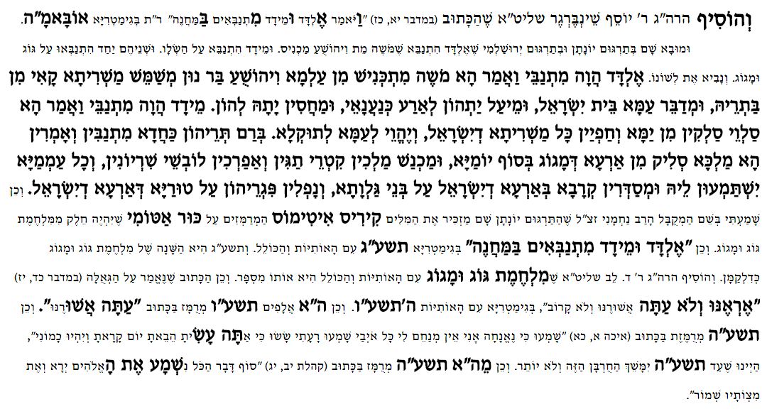 אלדד ומידד מתנבאים במחנה ראה ביונתן בן עוזיאל שניבאו חל גוג שילחם בישראל עם קיריס איטומיס=כור אטומי!!-!כור(יס)אטום(יס).ומתאר שם בדיוק פטריה אטומית!!מקובל מהישמח משה שסוד הגאולה נרמז במילה במחנה-ר"ת-חסן נסראללה בנימין נתניהו מלחמה האחרונה!