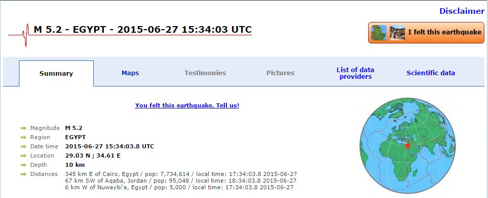 רעידת האדמה אתמול בדרום… אתר אמריקאי העוקב אחרי רעידות אדמה טוען שנקודת המרכז הייתה בדיוק במקום בו חצו בני ישראל את הים. האם זה נכון ??????